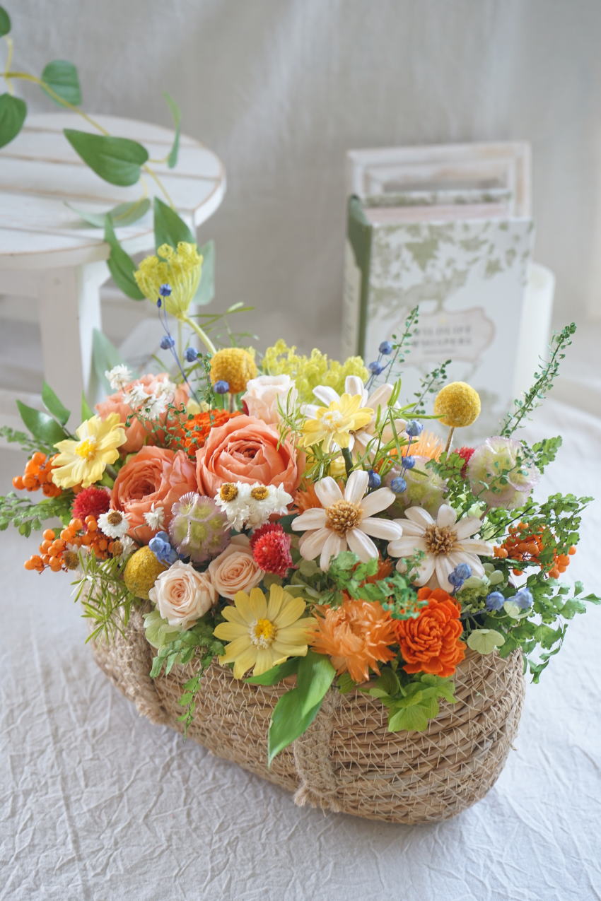 プリザーブドフラワーは とってもデリケート。 直射日光と湿気には注意して!! 外気に触れる窓辺や玄関先などは 飾る場所としてはあまり適さないです。 色があせてしまいます。 湿気にもとても弱いので 風通しのよいところに置くといった ケアーも忘れないで!! カビが生えたり、 お花が透明になってきます。 |
